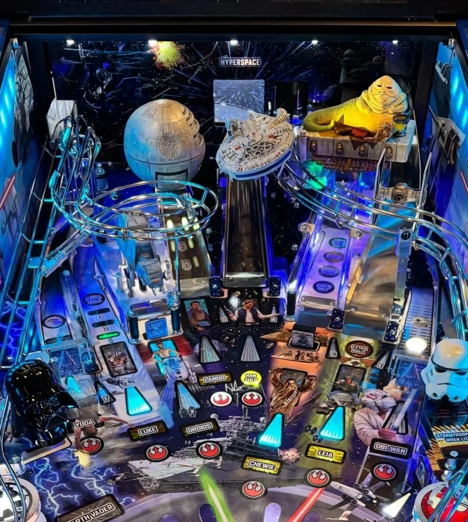 Our Jabba Replacement Mod is a fully re-engineered, interactive Jabba sculpt designed to integrate directly with your Stern pinball machine. Jabba features animated mouth movement and integrated sculpt lighting that activate during gameplay, responding specifically to successful Sarlacc Pit ramp shots.